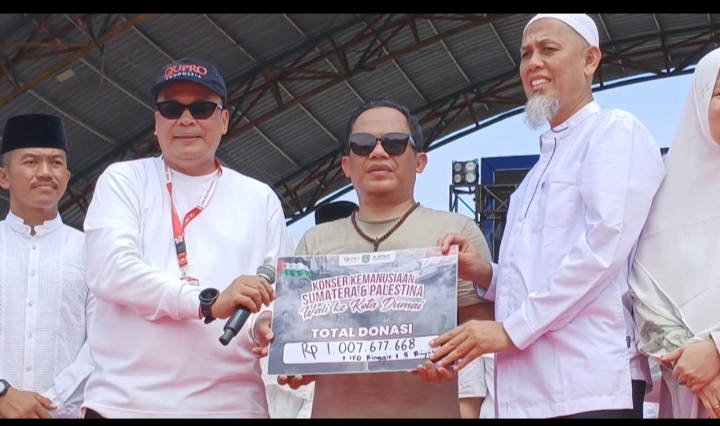 DUMAI (KHC) - Konser amal kemanusiaan untuk Palestina dan 3 Provinsi di Sumatera digelar Pemko Dumai bersama Qupro Indonesia yang menghadirkan Wali Band berhasil mengumpulkan donasi lebih satu miliar rupiah, Sabtu (24/1) pagi hingga siang.